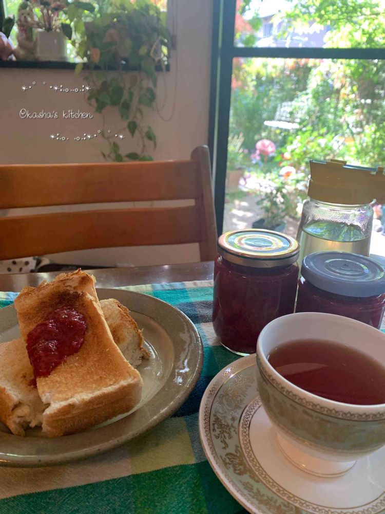 手作り苺ジャム🍓を乗せてトースト:*(〃∇〃人)*:💗