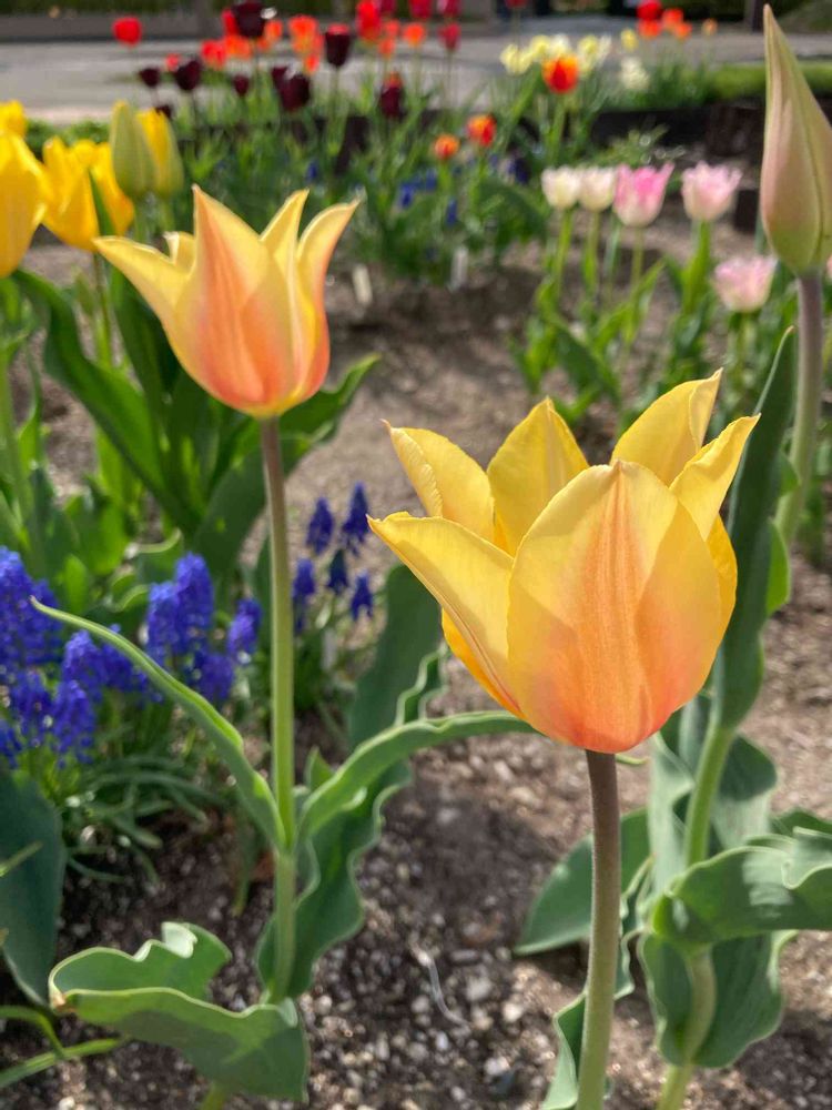 奥の方に大人🍷色チューリップが…見えますね。可愛い。
