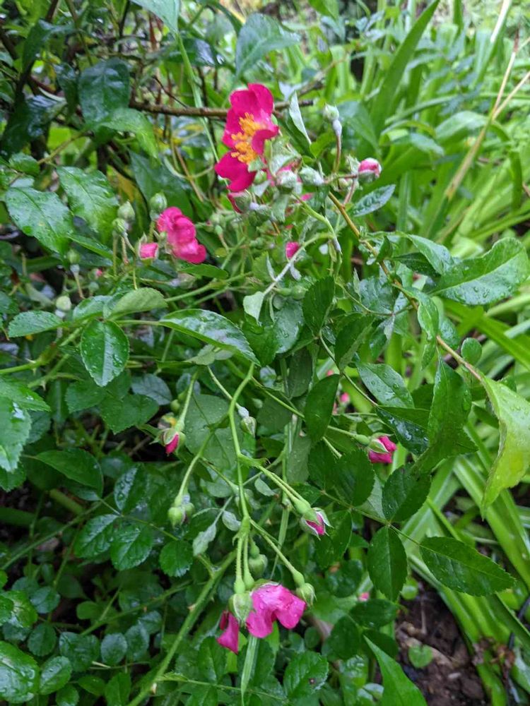 ヤバい!花が咲いたよ。😱😰苦手な、🌹コレは、ツルバラ?ミニ薔薇じゃあなかったの。?鉢を薔薇用に変えて、支柱してあげないと。😭😱😰