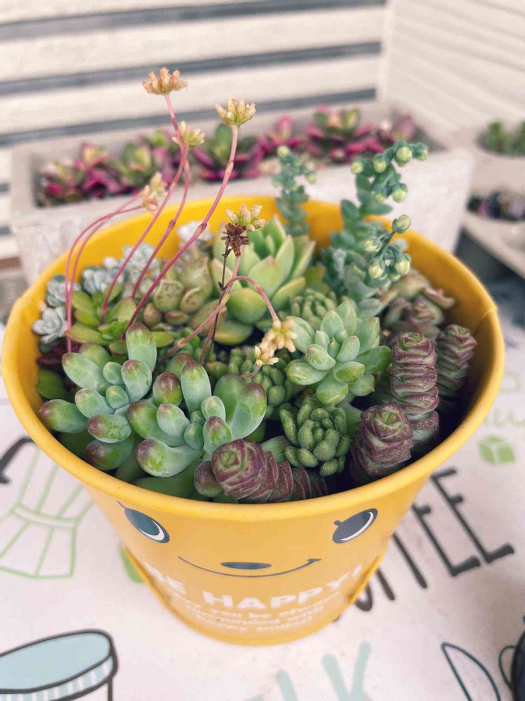 友だちからもらった多肉ちゃんで寄せました