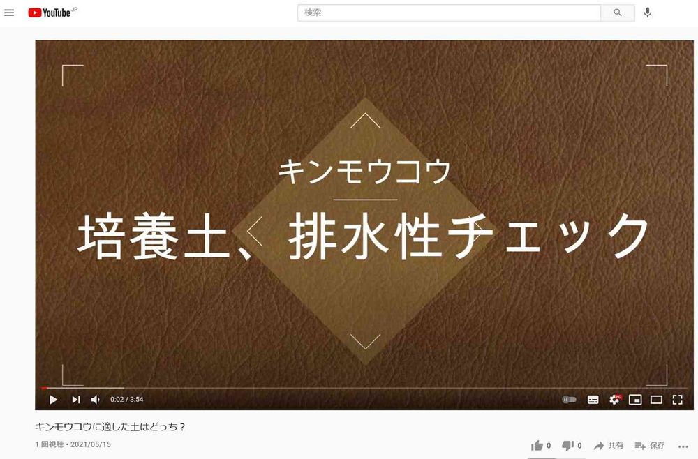 キンモウコウに適した土について動画にしました。ユーチューブで「キンモウコウ 土」で検索すると出てきます。短い動画なので観てくださいね。