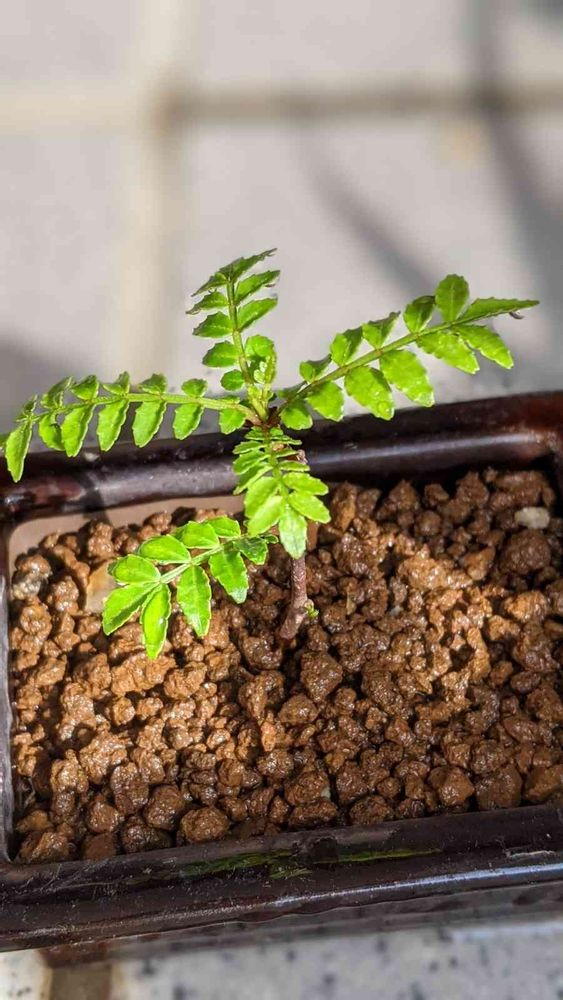 挿し木の山椒、豆盆栽風に。少し大きくなったかな
