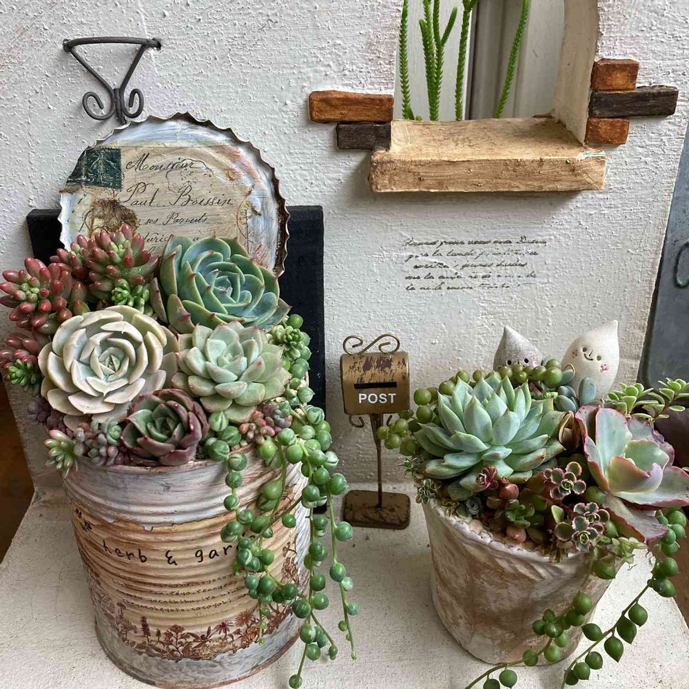 花工房 little gardenさんのWSのリメ缶に寄植え💖