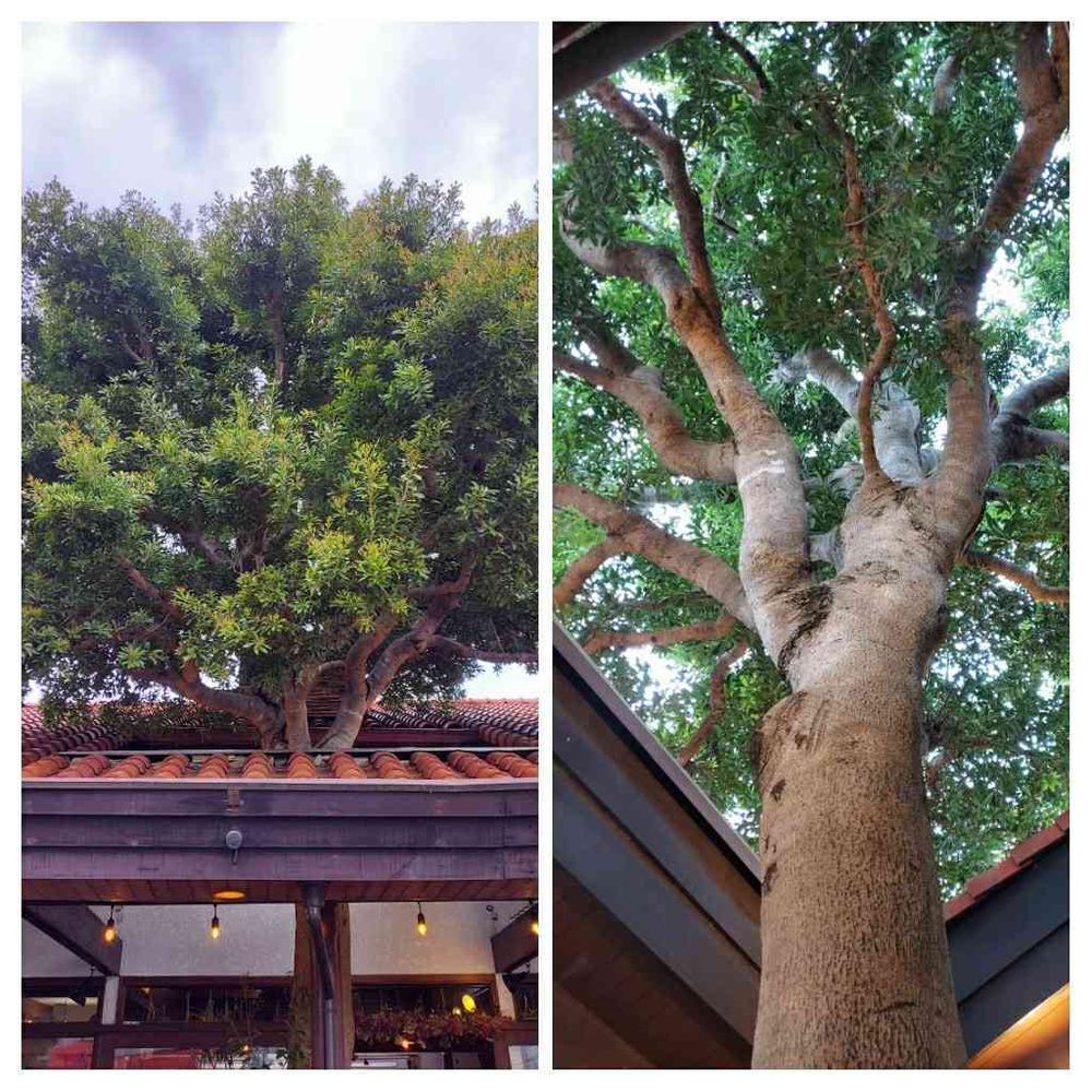 通りがかりのお花屋さんの屋根を突き抜けてる気になる木👀‼️店内から見上げてみても凄い⤴️⤴️😃❣️