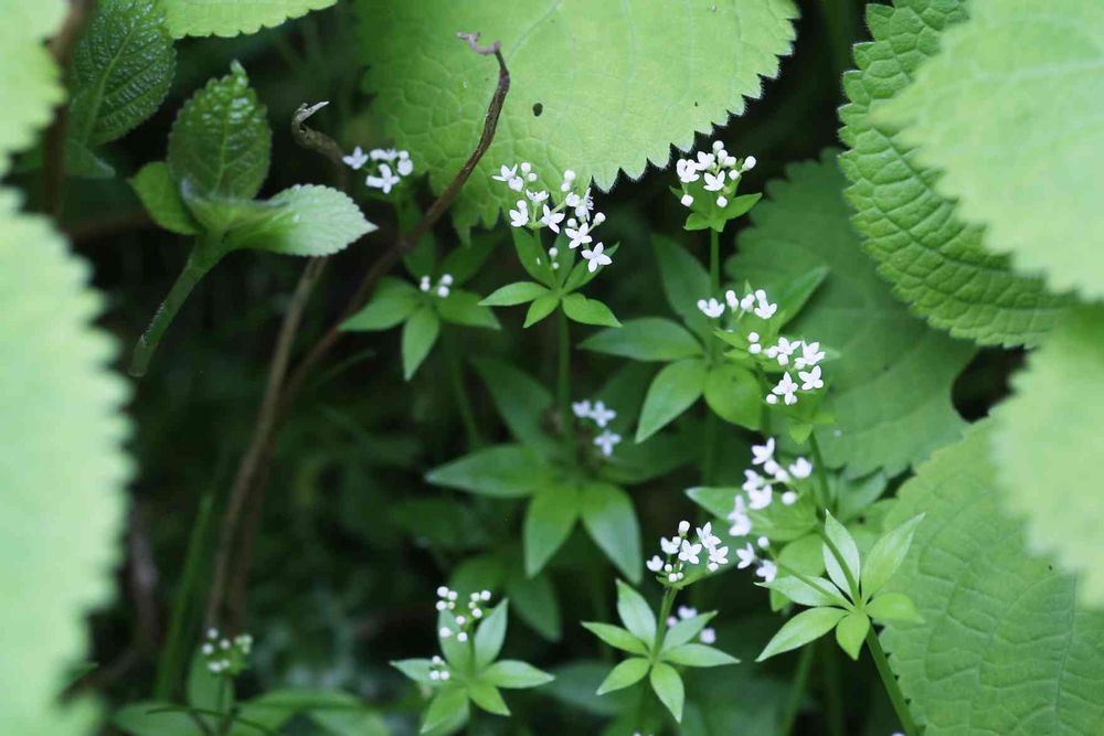 6枚の葉っぱ(正確には4つが托葉)が輪生し、先っぽに白い花を咲かせます☺️