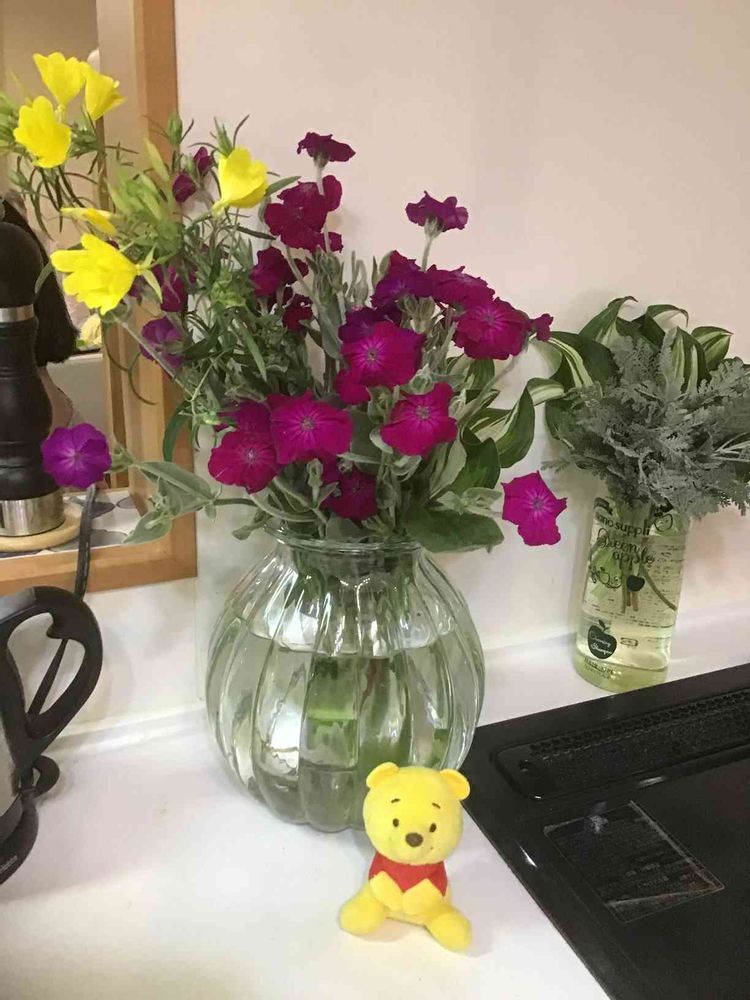 晩ご飯が 終わってから、プレゼントの 庭の花🌼を 今、飾りました❣️