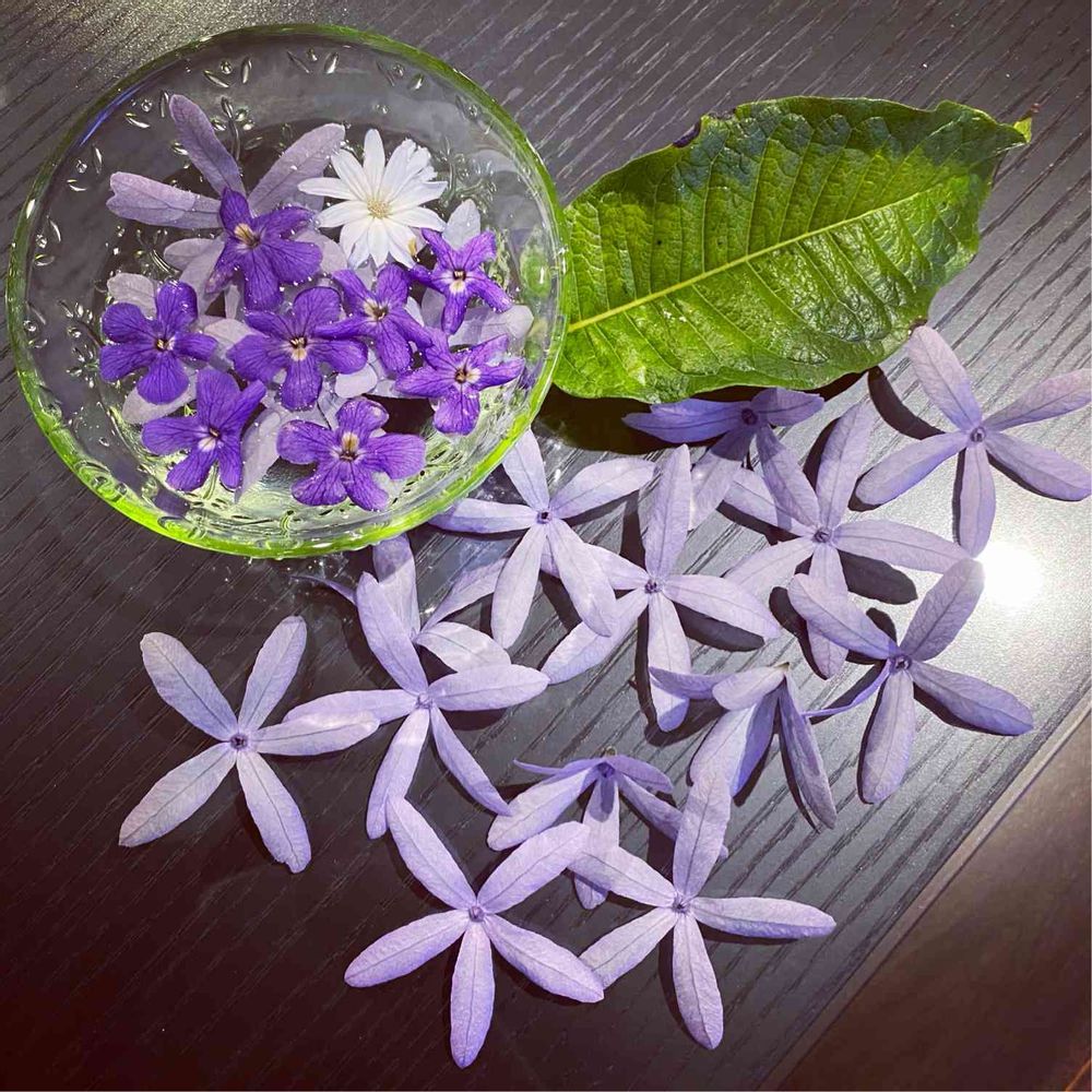 私がお迎えしたのは1ヶ月前で、花が全然付いてないものを選んだので今年はもう花は見れないかなと諦めてましたが、2週間くらいしたら花穂が1つ出てきたので、とっても嬉しかったです♡花穂が出てから薄紫の萼が開き、紫の花が咲いて、花が散り、全ての萼が散ってしまうまで2週間くらいでしたよ!紫の花は開いてから1日で散ってしまいます🥲短い命ですね‼︎
