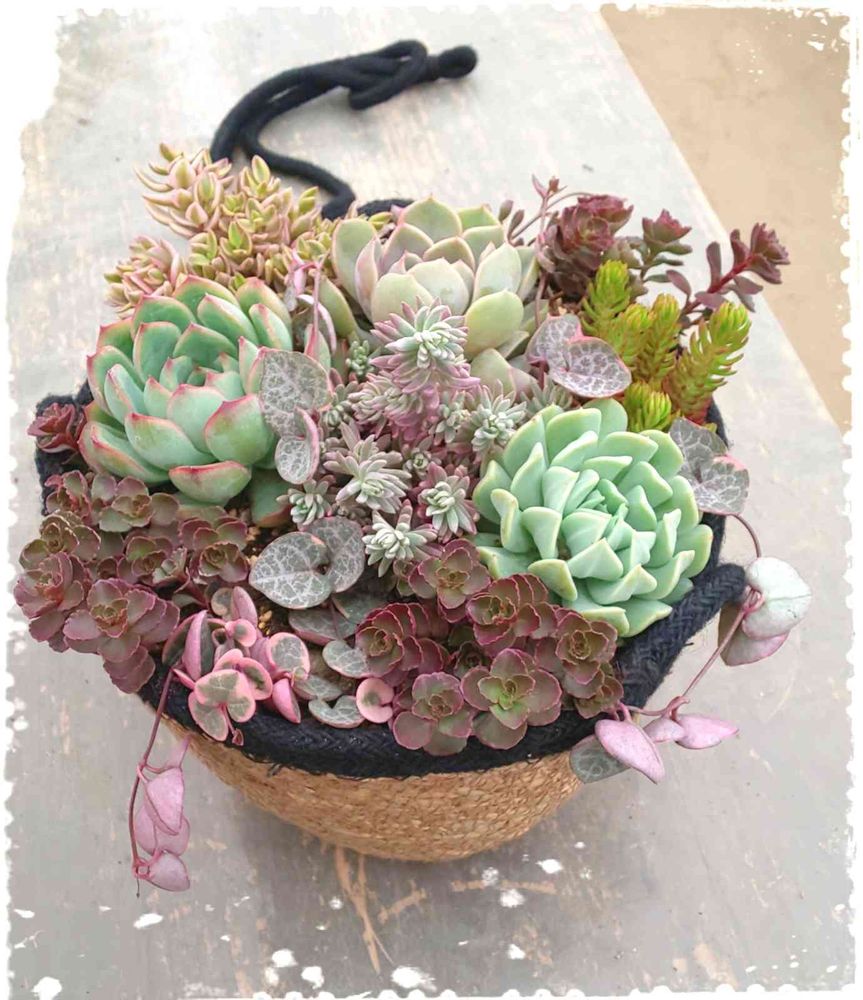 吊りカゴに可愛くてモリモリでお得な寄せ植え✨