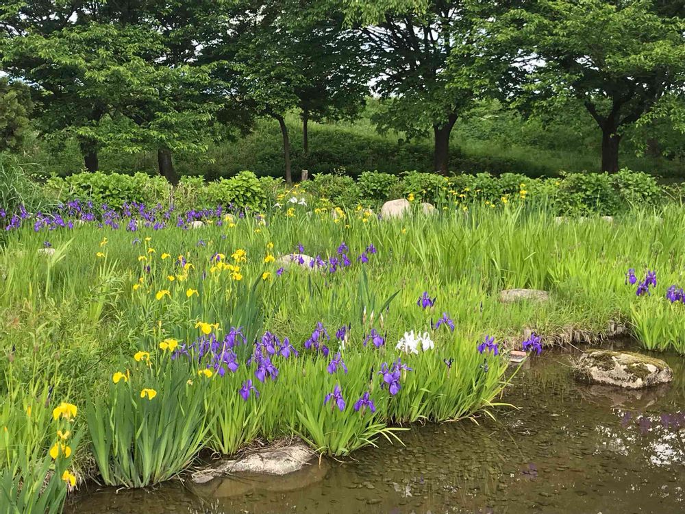 牡丹園の中に黄色と紫の勝負の花が〜😊💕