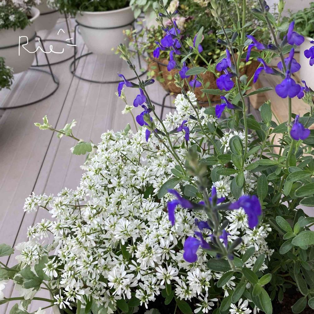 バルコニー/ベランダ,セージグレッギーブルー,ユーフォルビアダイアモンドスノーの投稿画像