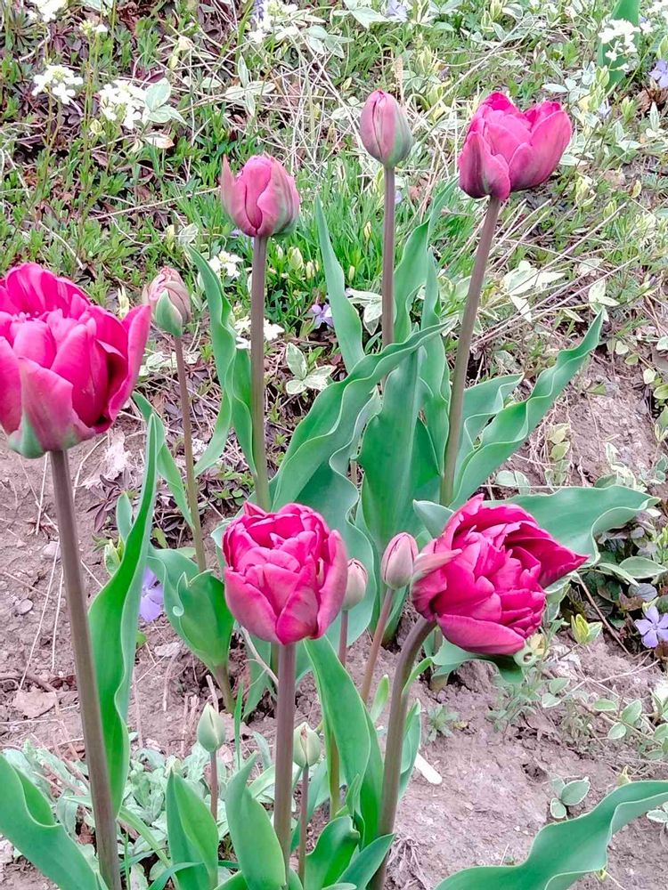 広い庭,チューリップ赤八重,花のある暮らしの投稿画像