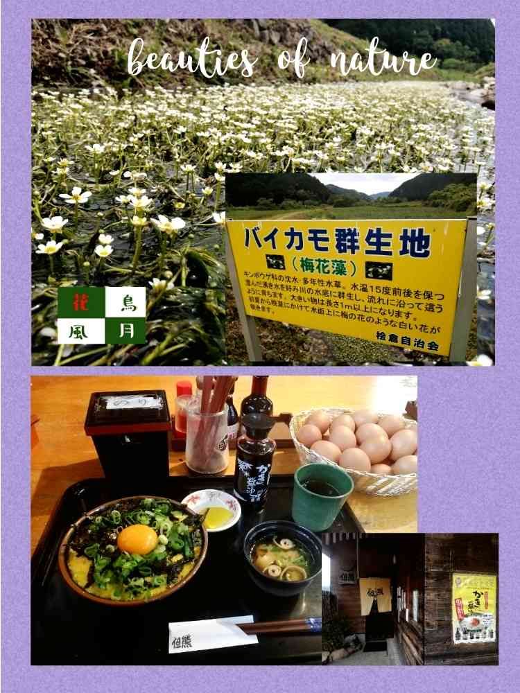 丹後半島からの帰路、丹波市青垣町の友人宅近くの梅花藻群生地へ。その前に豊岡市丹東町にある卵かけご飯専門店発祥の但熊へ久しぶりに訪問。先月初めNHKの逆転の人生で紹介されたので覗いてみた次第。卵かけご飯410円、産みたて卵🥚食べ放題、海苔とネギかけ放題、🥚6個食べました😋