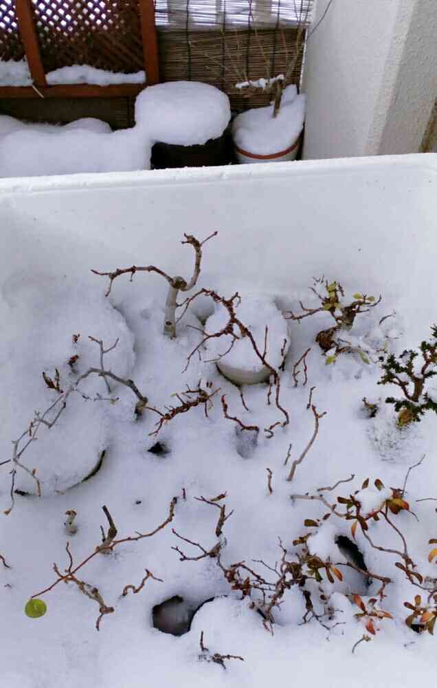 箱に入れた盆栽たちもすっかり埋もれました。このまま長い長い冬眠開始です。