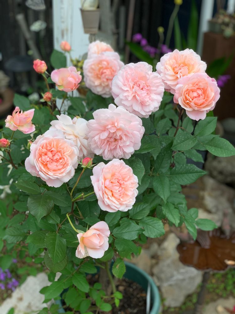 淡いピンクの花がたくさん着いて、ふんわり咲くかわいいバラさん🌹