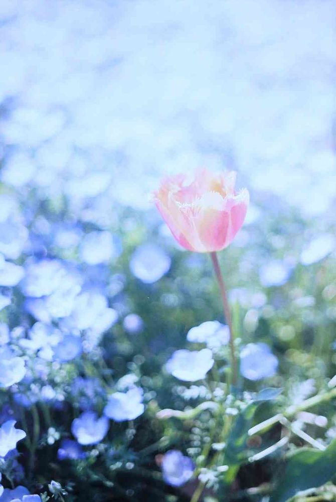 ネモフィラとチューリップ、コントラストがいいですね✨✨