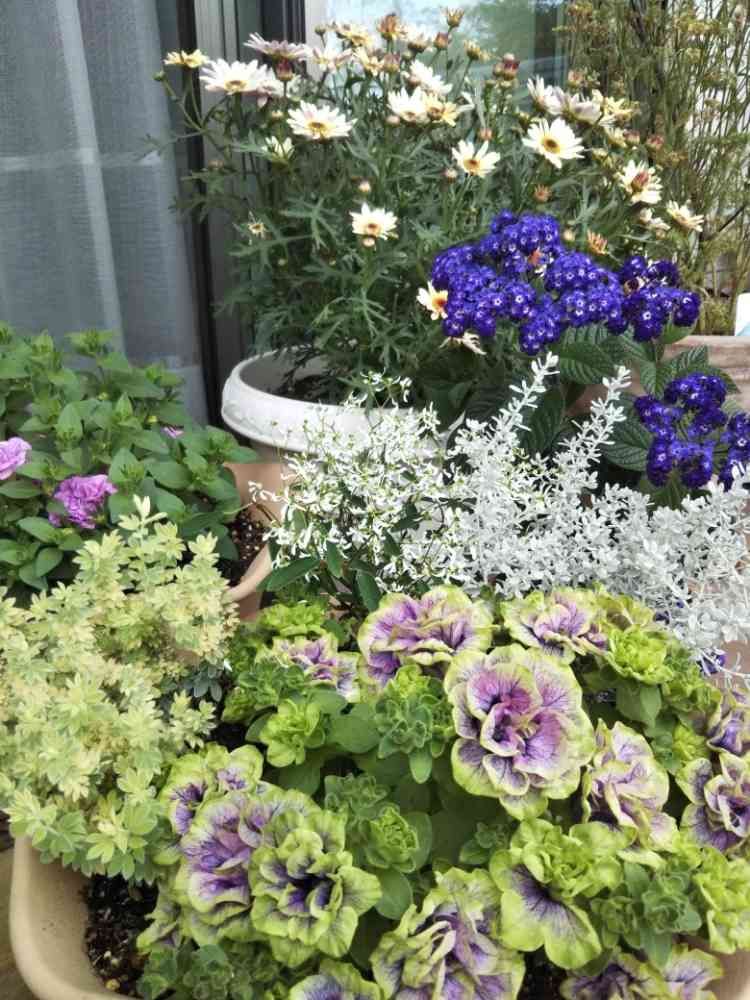 魅力的な色のペチュニアさんの寄せ植えステキですね〜💕