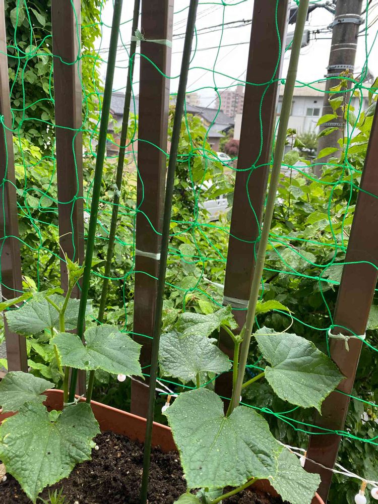 ベランダ菜園のきゅうりに🥒ネットを付けました。沢山収穫出来ます様に❤️