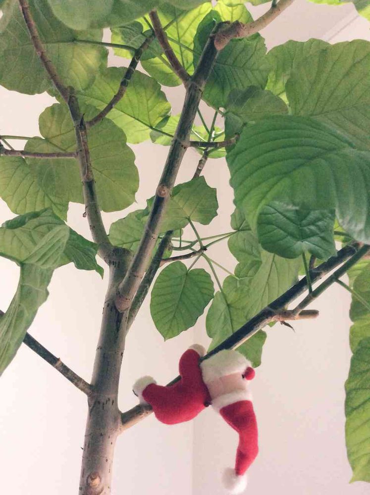 そんなウンベラータにサンタ🎅がせっせと木登りしてます