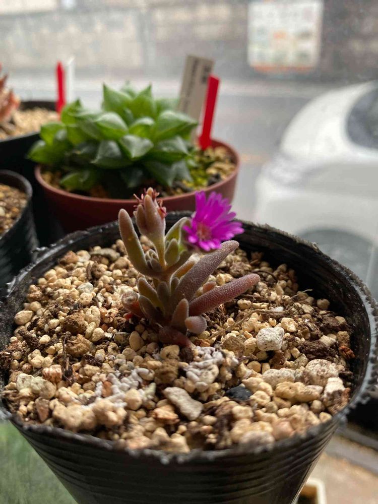 おはようございます😊Drosanthemumは、アフリカ南部の冬の降雨地域に自生するアイスプラントファミリーの多肉植物の属です。ほとんどの種は色とりどりの花を持っています。 Drosanthemumという名前はギリシャ語で「露の花」を意味し、多肉の葉や花芽を覆う特徴的な光沢のある半透明の乳頭を指します。 ウィキペディア🙏