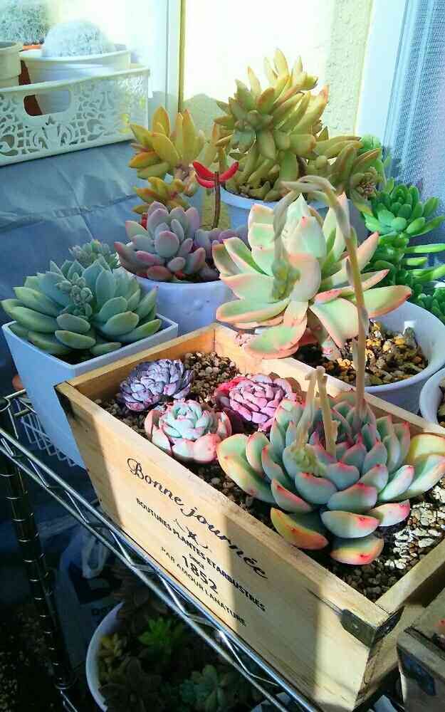 太陽の光を浴びて多肉ちゃんたちも嬉しそう.+:。 ヾ(◎´∀`◎)ノ 。:+.✨✨