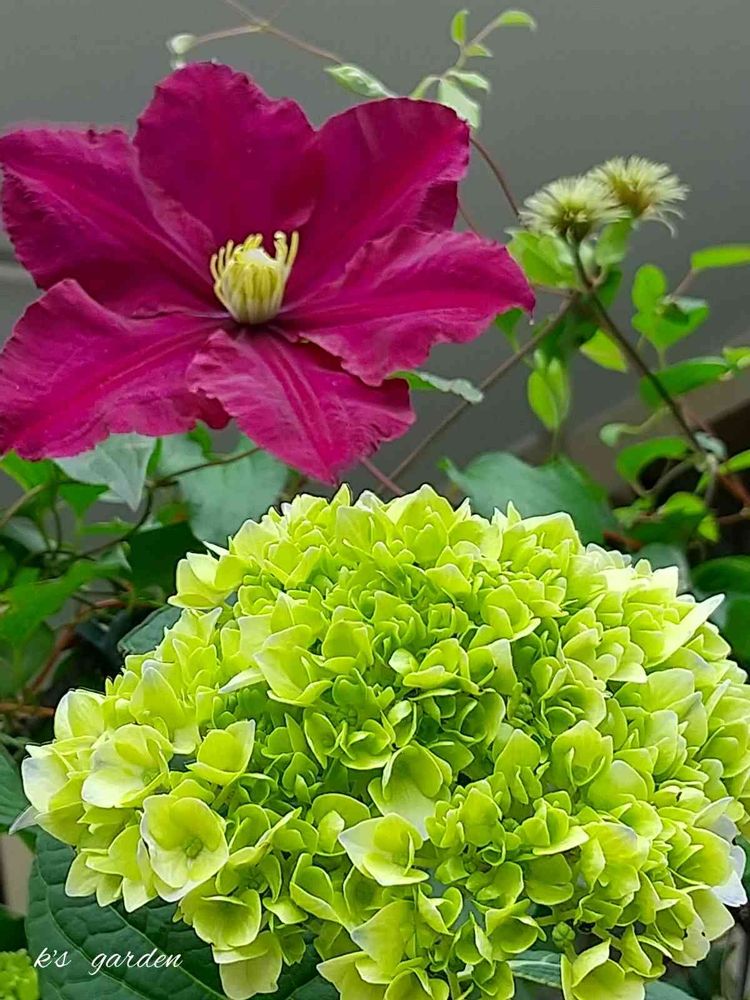 クレマチスと紫陽花、MAKOさんもお好きなのね👍