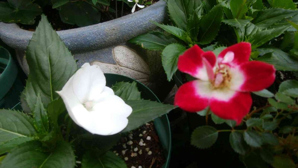 くまのモンさんの広い庭,ミニバラ,サンパチェンス ホワイトの投稿画像