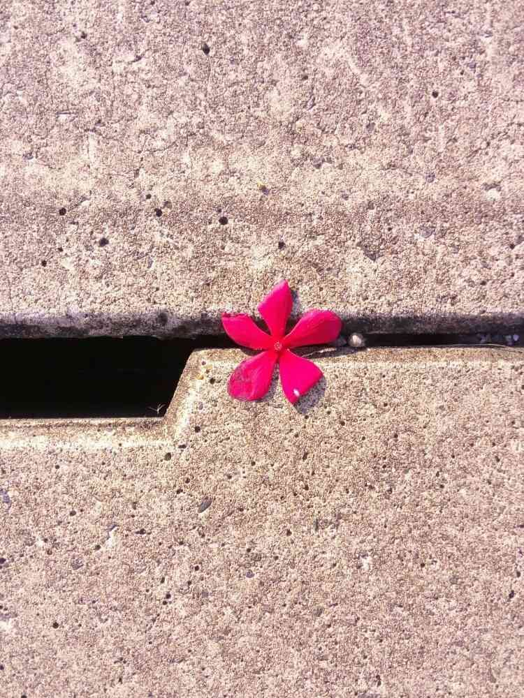 灰色の側溝に映えるピンク🌼