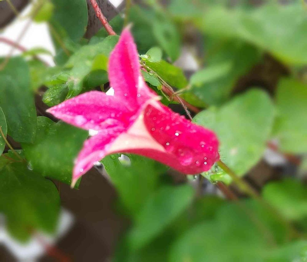 チューリップ型の紅桃色のお花で、たくさん蕾があり楽しみです。