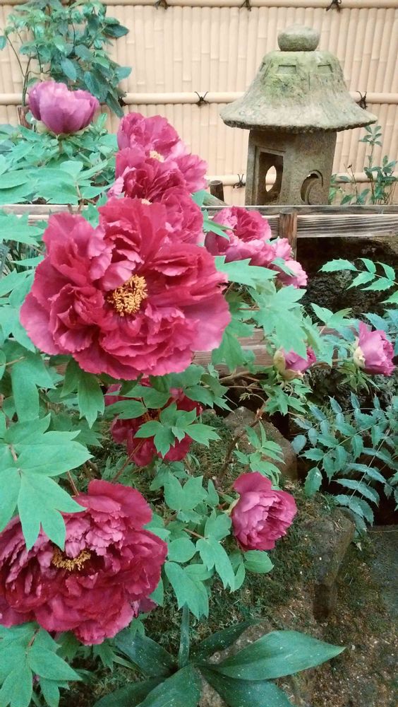 石塔は 日本庭園にお似合い❣️牡丹も又