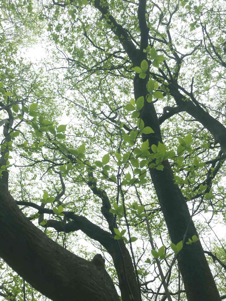 キャンプ場近隣の遊びの森の新緑が綺麗でした🌿✨これは恐らくイヌブナです。この森の主要構成樹でした🌳晴れてるともっと綺麗かと思いますが、この曇り空の新緑の森も大変美しい空間でした。