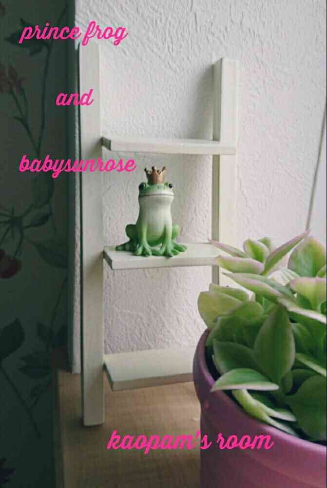 カエル王子とベビーサンローズの色合いがふんわりと似てて、素敵な空間ですね(✿︎´ ꒳ ` )♡︎