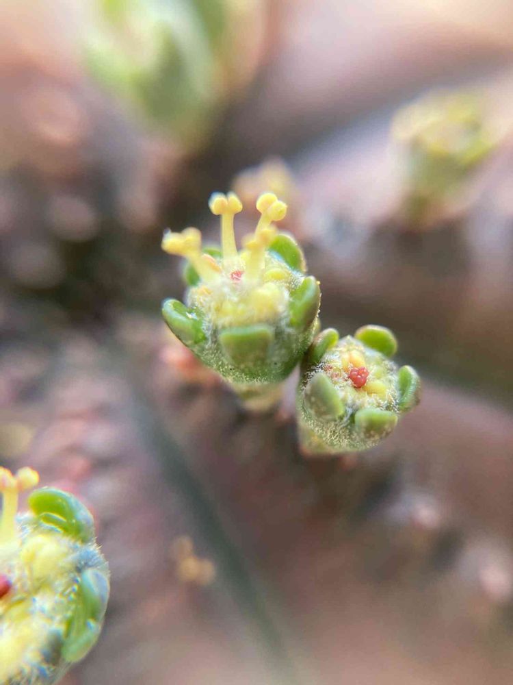 このオベサの花は 左は雄花らしいのですが、隣の小さい花は ちょっと様子が違います👀⁉️