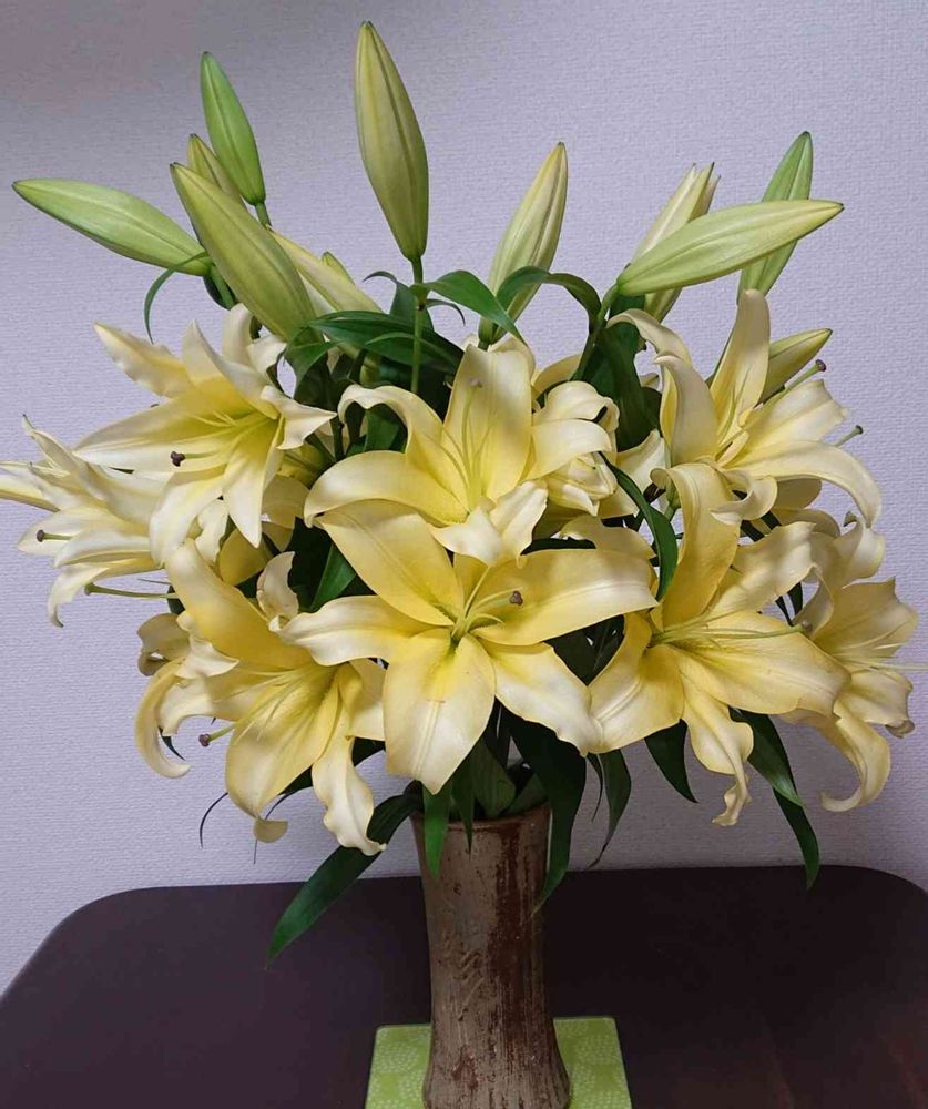 母の日に合わせて優しい色合いのユリが届きました🎵