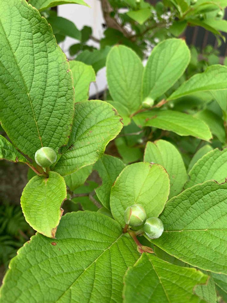 玄関の夏ツバキ、沢山の蕾がついてます。
