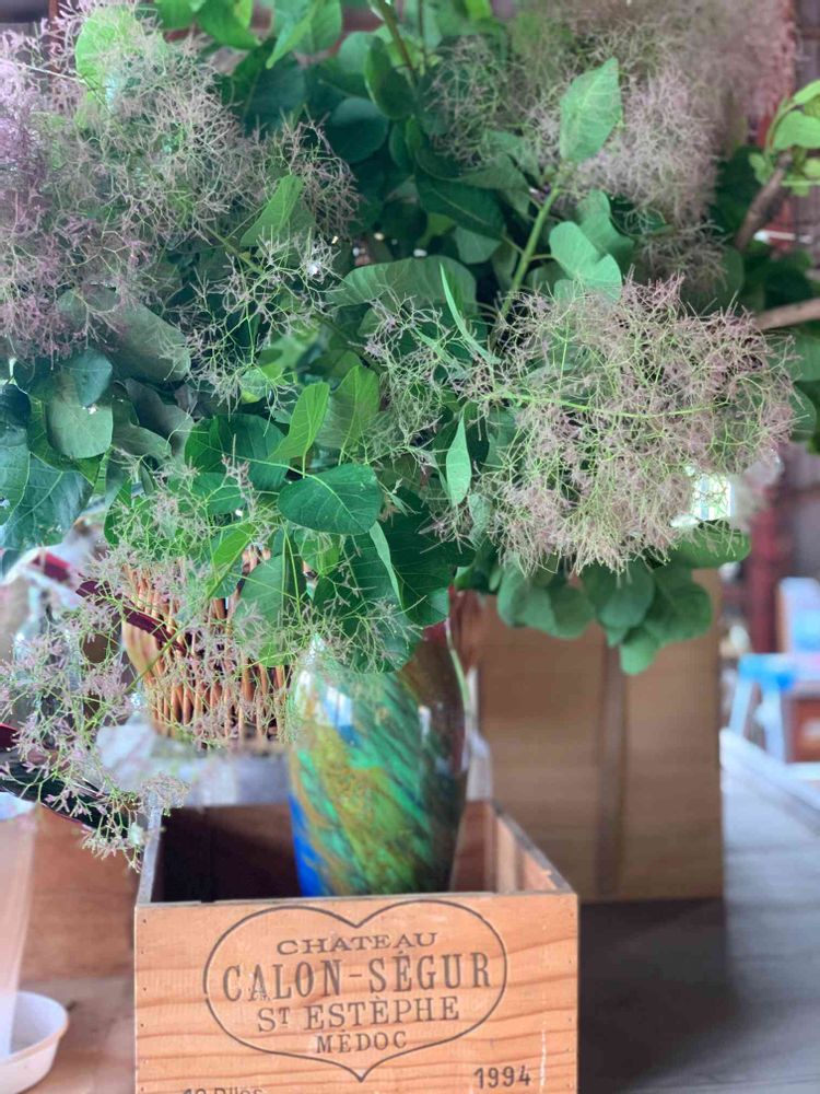 スモークツリー真っ赤な葉っぱから煙が出てくるねって友人が面白がって毎年切りに来ます