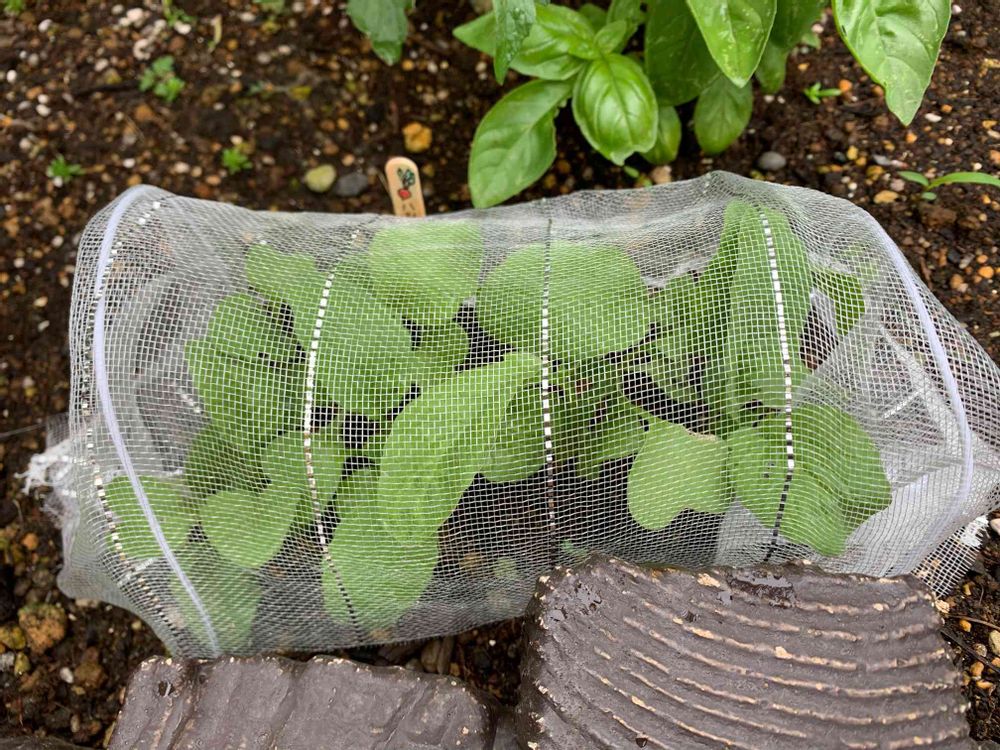 ハツカダイコンに大急ぎで防虫ネット張りました。
