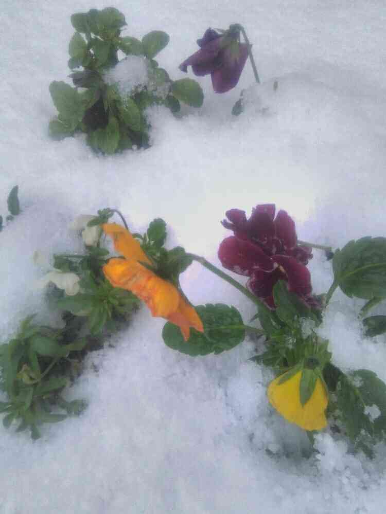パンジーとビオラ雪の中❄️頑張ってるねぇ😍