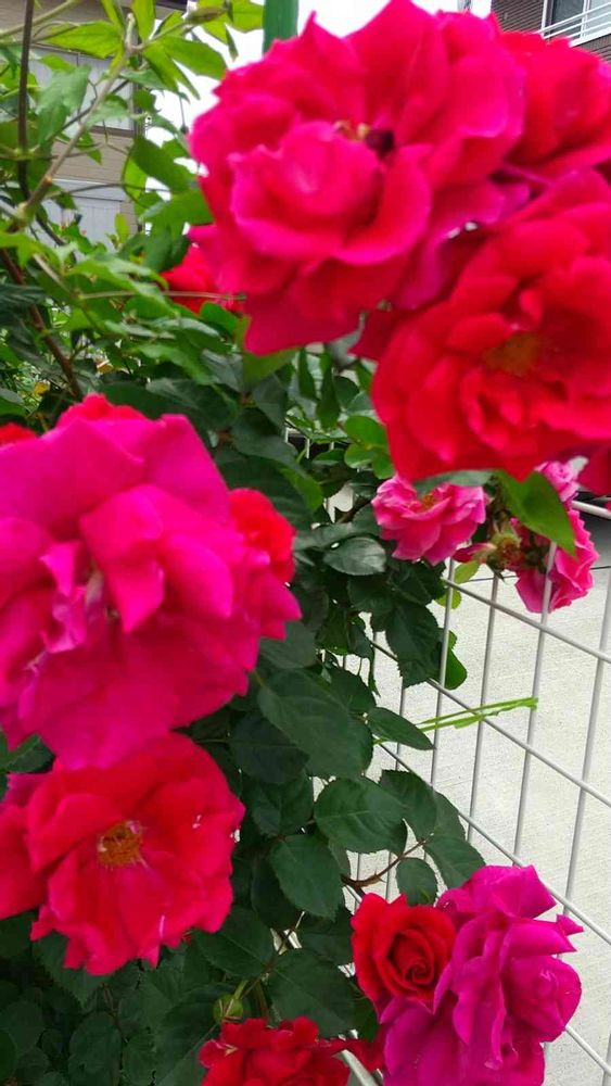 @どくだみ女様、つるミニバラ、キングローズでした。見てくれて有り難うございました❤️貴女の、薔薇も、ツルバラですか?花のつき方がこちら、と、似てますよね❗ひとつの花は、小さいのに五個の花がまとまって咲いているから大きな花に見えます。