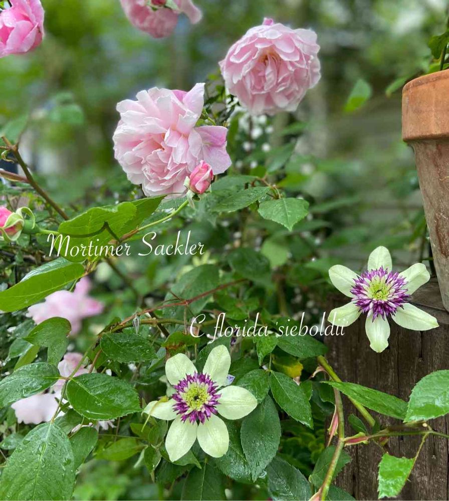 バラ モーティマーサックラーとクレマチステッセン🌸