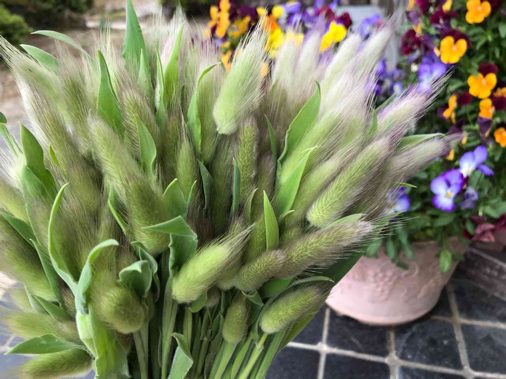 ドライフラワーアレンジに凝り始めた頃からの大好きなラグラス。
