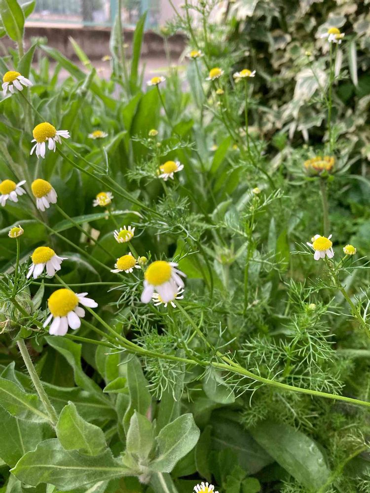 カモミール…我が家も2年前に植えてそのまま☆になったことのに、今日見たらめちゃめちゃ小さいのが花1輪咲かせてました😆