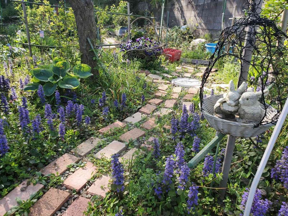 うさぎさんたちが似合う🐇🐇なんて可愛いお庭。バラも咲くんですね。