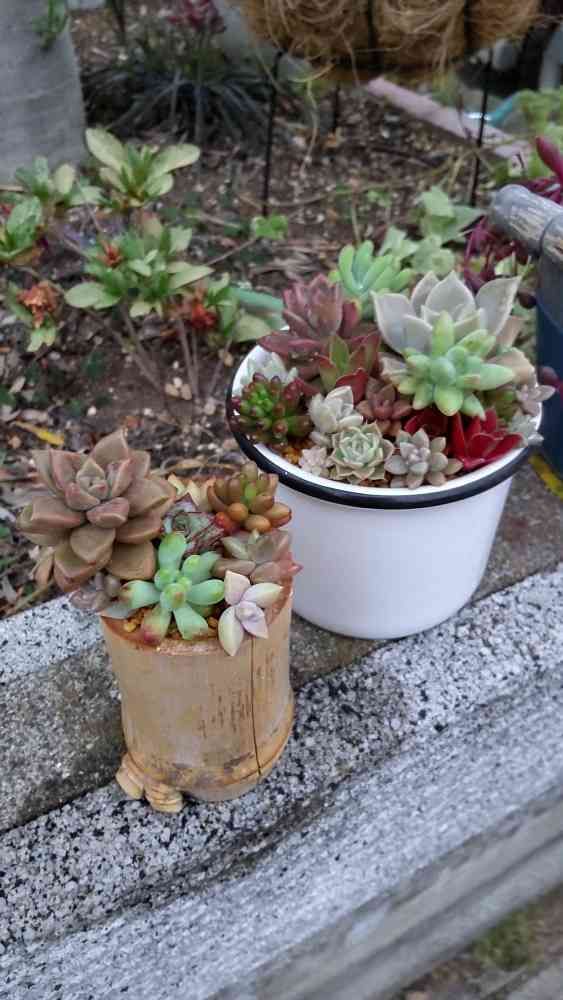 今日はお家時間を過ごし…やることが無くなったので家に生えてる普及苗で寄植え♥