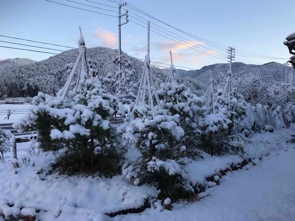 過去に初雪が大雪で庭木がバキバキに折れた経験があるので今年は早めに雪囲いしました🍁。