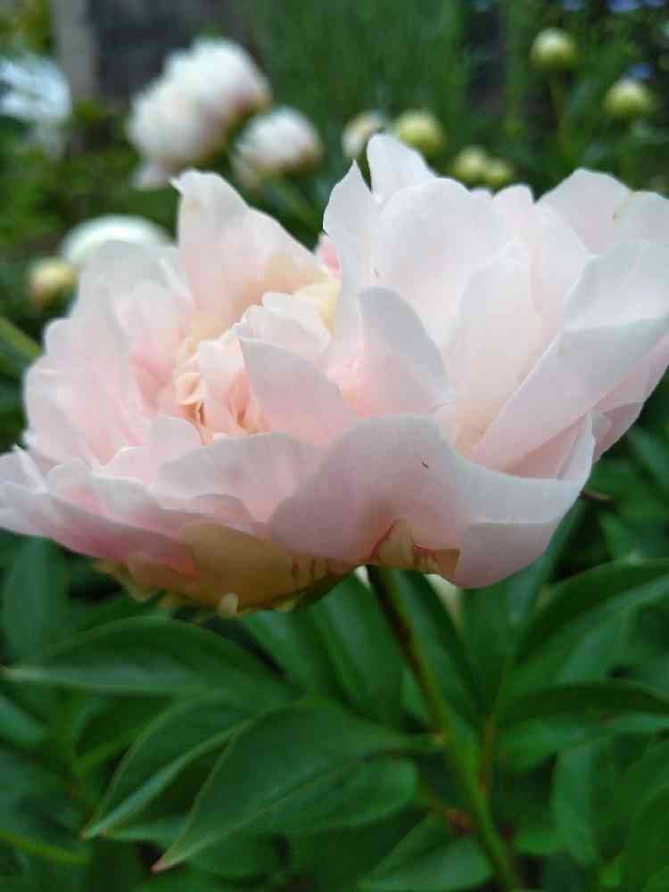 淡いピンクの芍薬さん、晴れた日日には真っ白にみえるくらい淡い淡いピンクです(笑)(^_-)-☆
