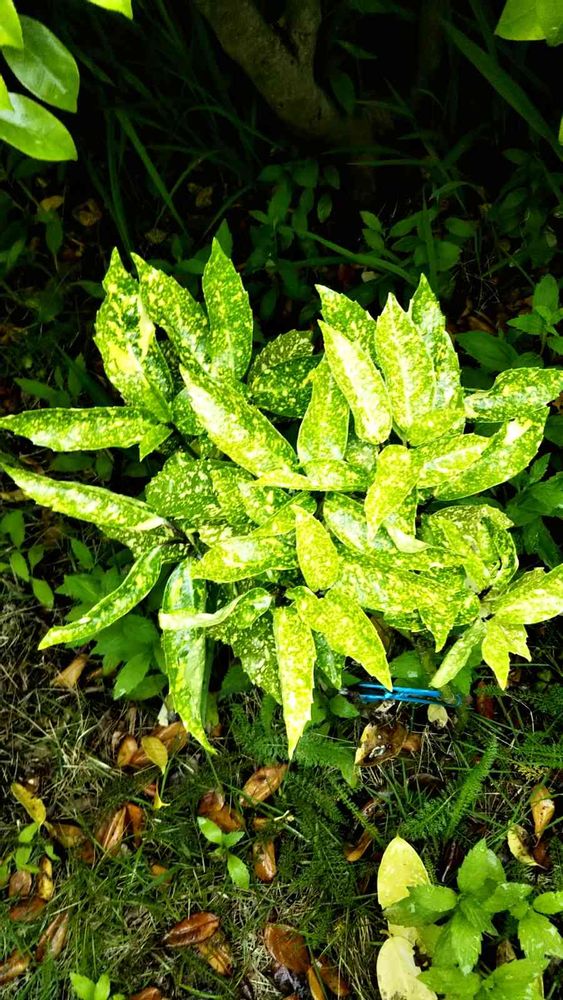 雨の中、鮮やかな斑いり黄緑が大好きです🍀🎶💕。