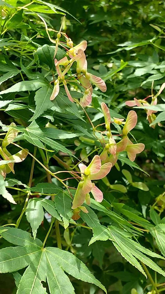 緑💚のもみじに少し赤くなった種、日にあたって綺麗だよね。💕