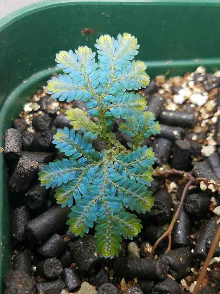 青いシダ、セラギネラ ウィルデノウィー。挿し木から葉が出ています!!
