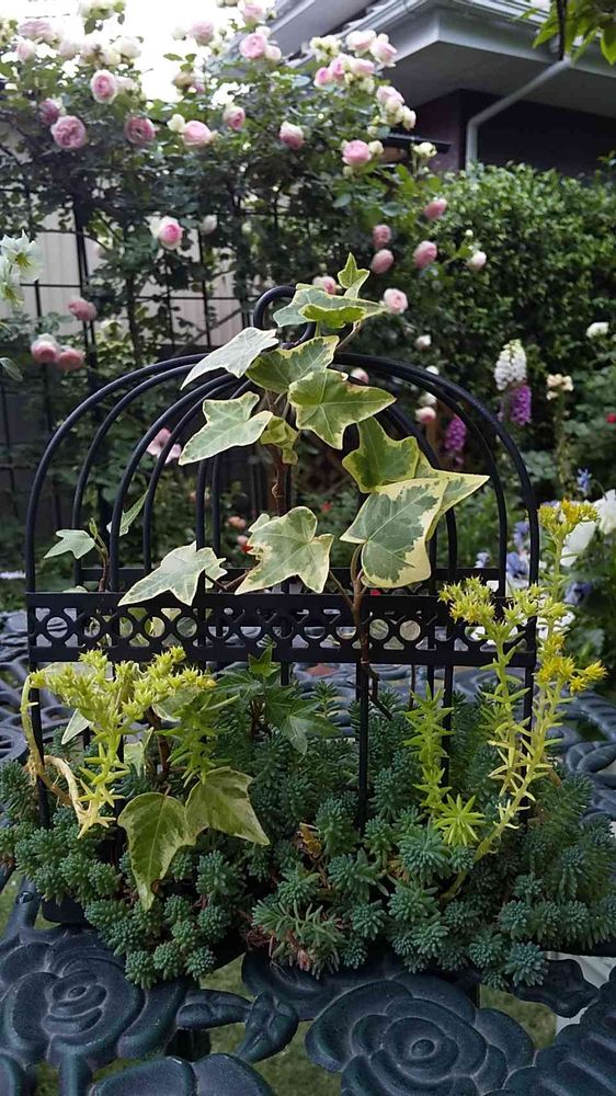 水苔敷いて、発根させたヘデラ、とセダムをチョンチョンと😉