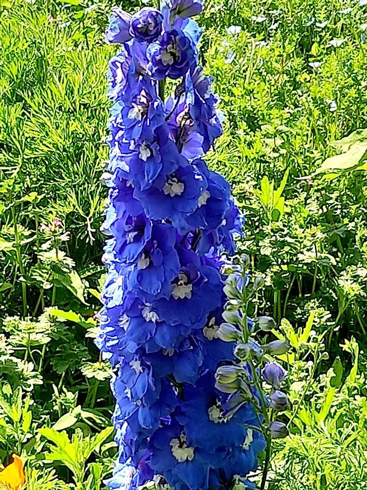 ネモフィラやポピーが咲く原っぱにひときわ目立つせいたかのっぽさん…デルフィニウムのイメージが塗り替えられました~😊